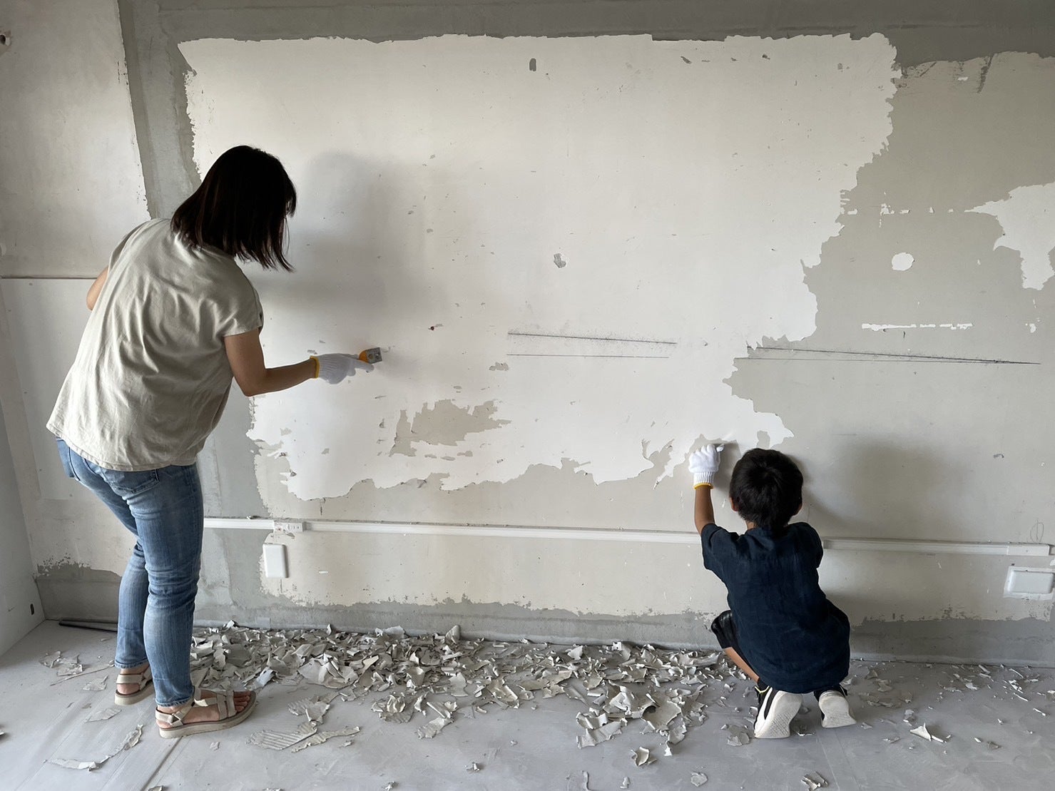 スクレーパーを使って剥がす箇所と