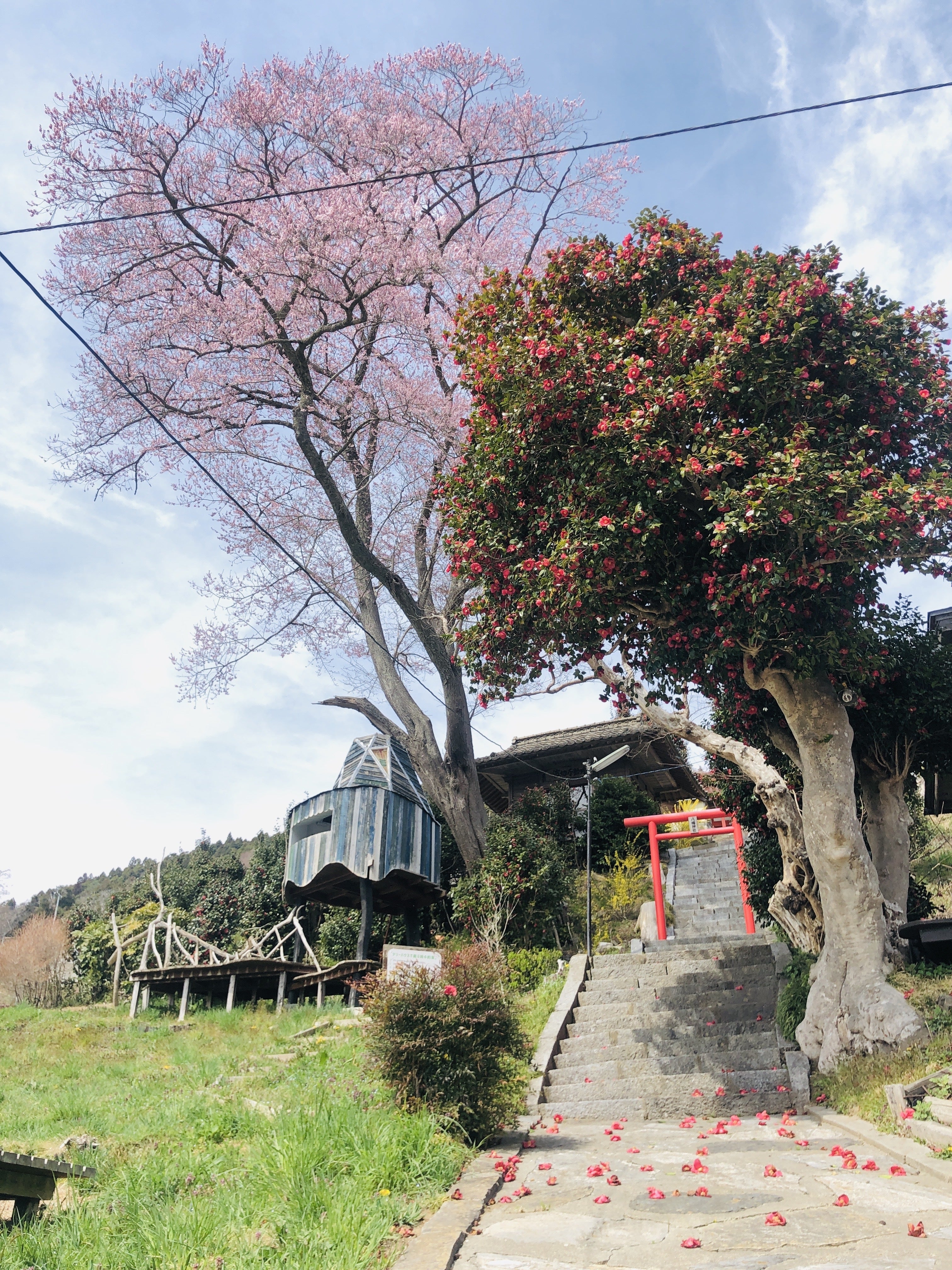 つなかんの横には大きな桜の木とツリーハウス。この窓から見える鮪立湾の眺めも自慢の一つです。
