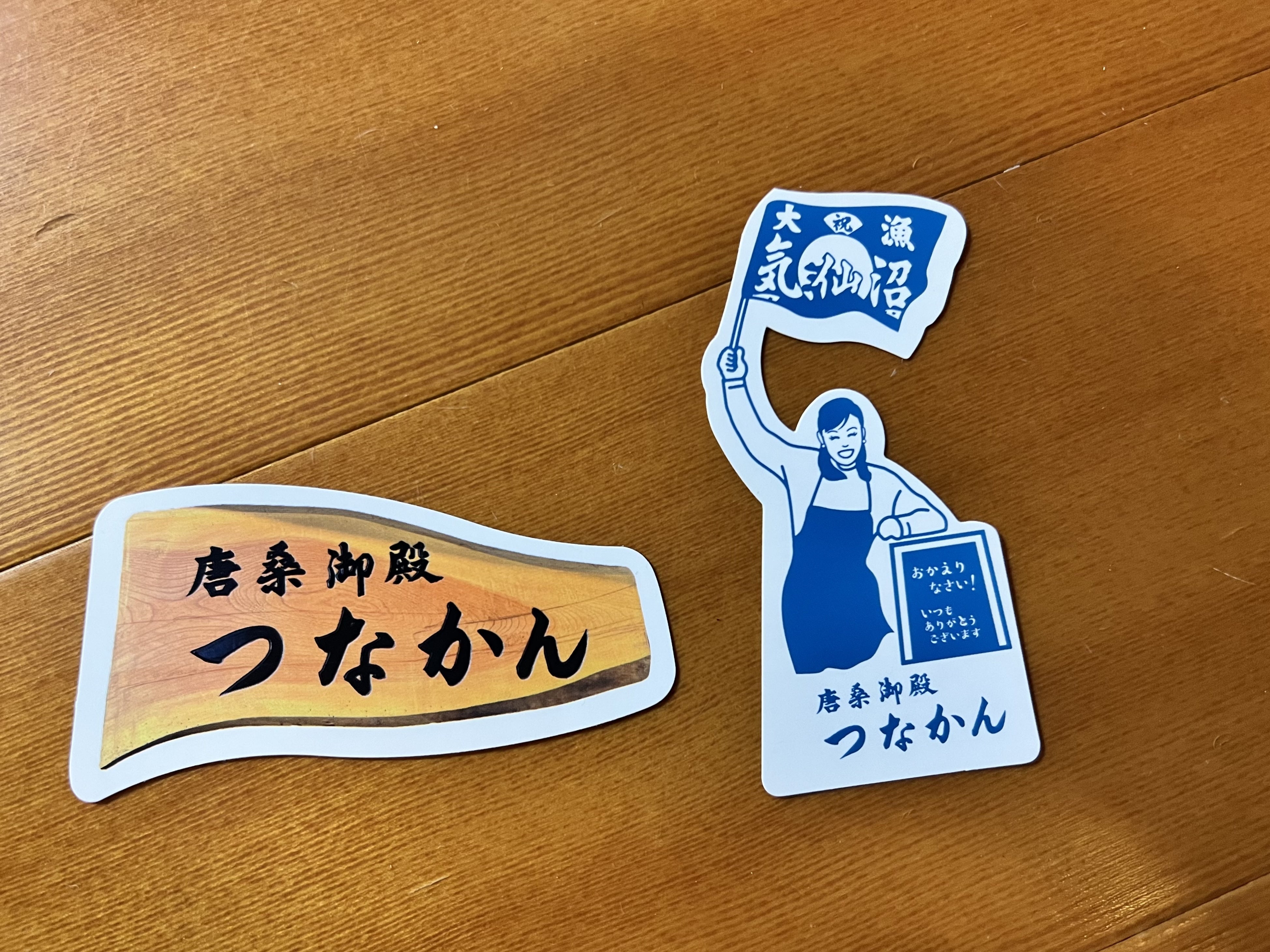 つなかんの看板デザインのものと女将の一代が福来旗(フライキ)を振っているものになります。