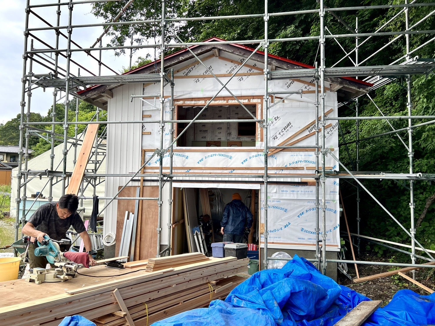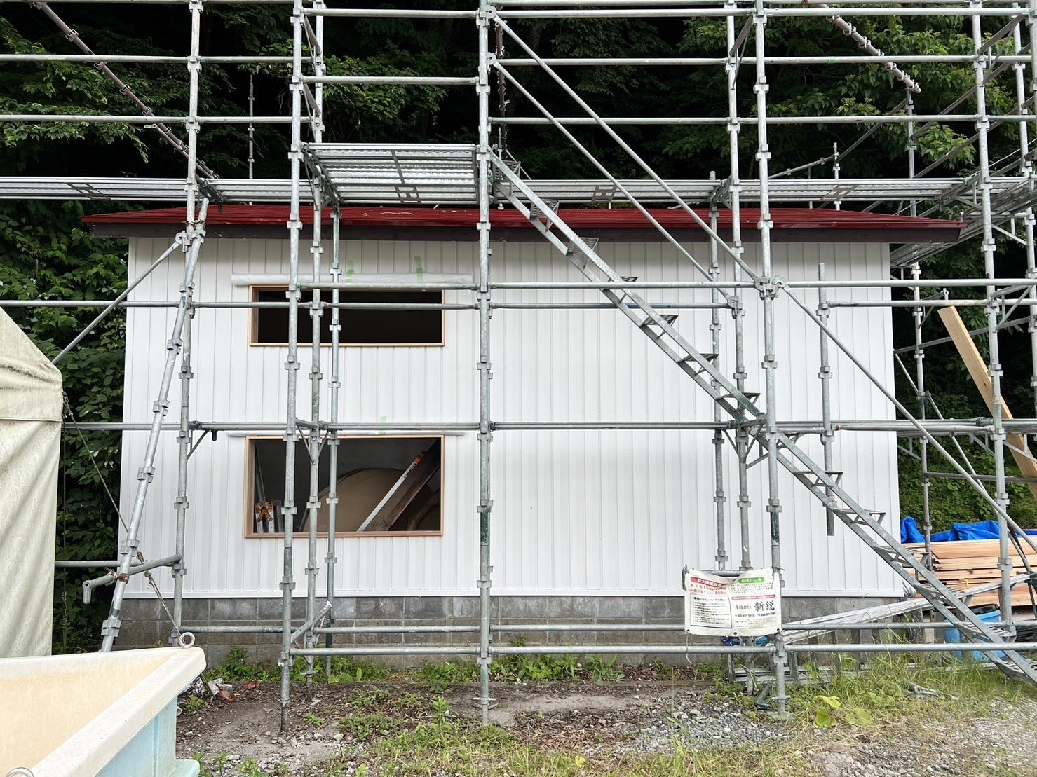 さてさて、サウナ小屋のほうですが、現在急ピッチで作業中です。