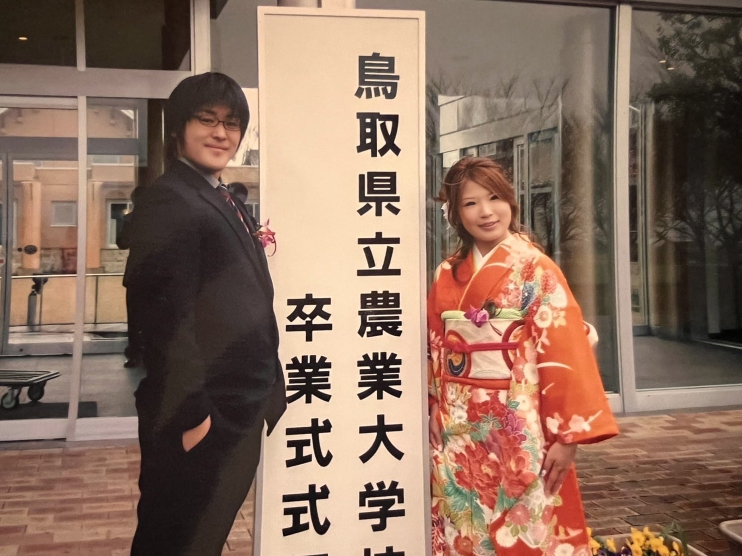 高校で野菜栽培を学びながら選択授業で選んだ畜産の授業で畜産にハマってしまい、もっと牛について知りたい!!と進学先の『鳥取県立農業大学校』では畜産科に在籍していました。当時は全寮制だったため、朝から晩まで牛まみれでとても充実した学生時代を過ごす中で、野菜科の同級生だった夫と出会い卒業後2年で結婚!以来、大栄スイカの生産農家嫁として3人の子育てをしながら夫の家業を手伝ってきました。