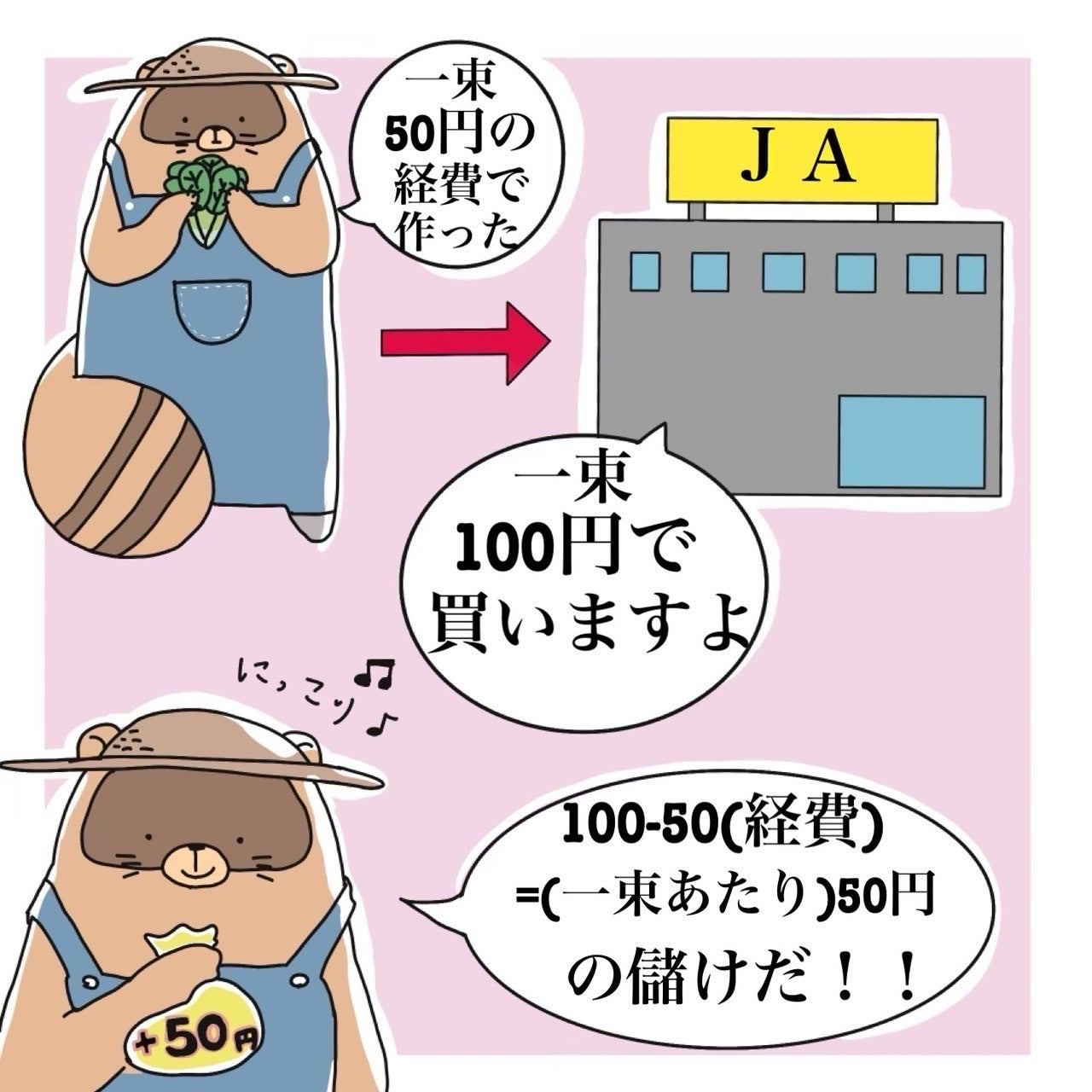 ※ここでの経費とは種苗代・農薬代・資材費・雇用労賃など、1束の小松菜を出荷するまでにかかったコストのことです。