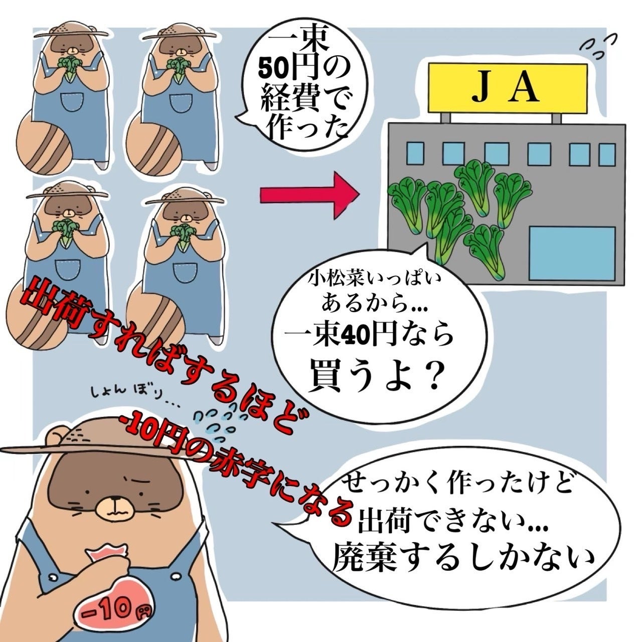 みなさんは出荷調整を知っていますか?作物の豊作が続くと市場で商品が溢れ、商品価値が下がります。そのため、どれだけ高品質な野菜を作っていても安価で買い叩かれることになります。すると経費が出荷価格を上回り、出荷すればするほど赤字になるため品質が良い野菜であっても廃棄を余儀なくされてしまうのです。