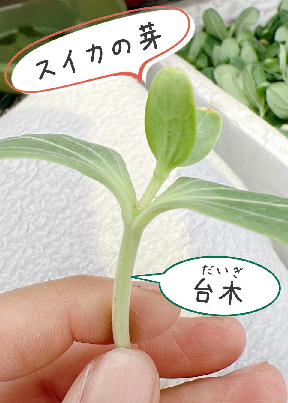 1月に播種したスイカは、赤ちゃん苗の時に接木をします。接木をすることでしっかり根を張る苗になり病気にも強い苗が出来上がります。接木が終わった苗は適温に保たれたハウスで約1ヶ月半大切に育苗されます。