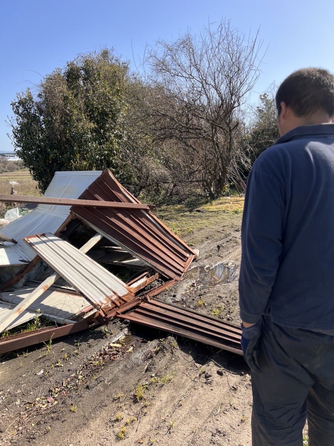 これは農業をする中で避けることのできない問題です。北栄町では令和3年の記録的集中豪雨により堤が決壊したため、ハウスやスイカのトンネルが流され甚大な被害を出しました。後に激甚災害の指定を受け、現在もその影響から使用できない畑や田んぼが残っています。