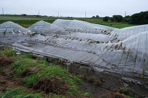 我が家は大きな施設被害はありませんでしたが、収穫間際のトウモロコシ約50aが廃棄処分となりました。地中からの過剰な水分を吸い上げ房の中で実が弾けてしまい、その結果弾けた部分からカビが生え広がってしまったのです。トウモロコシは皮のまま出荷します。無傷なトウモロコシもあったかもしれませんが、それを1つ1つ剥いて確認するわけにはいかず品質に自信が持てない商品は出荷するべきではないという判断で、50aのトウモロコシが全廃棄となりました。
