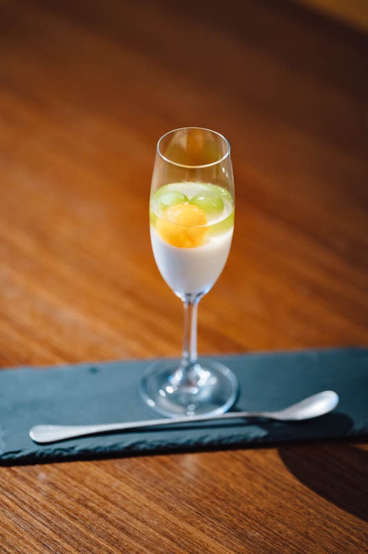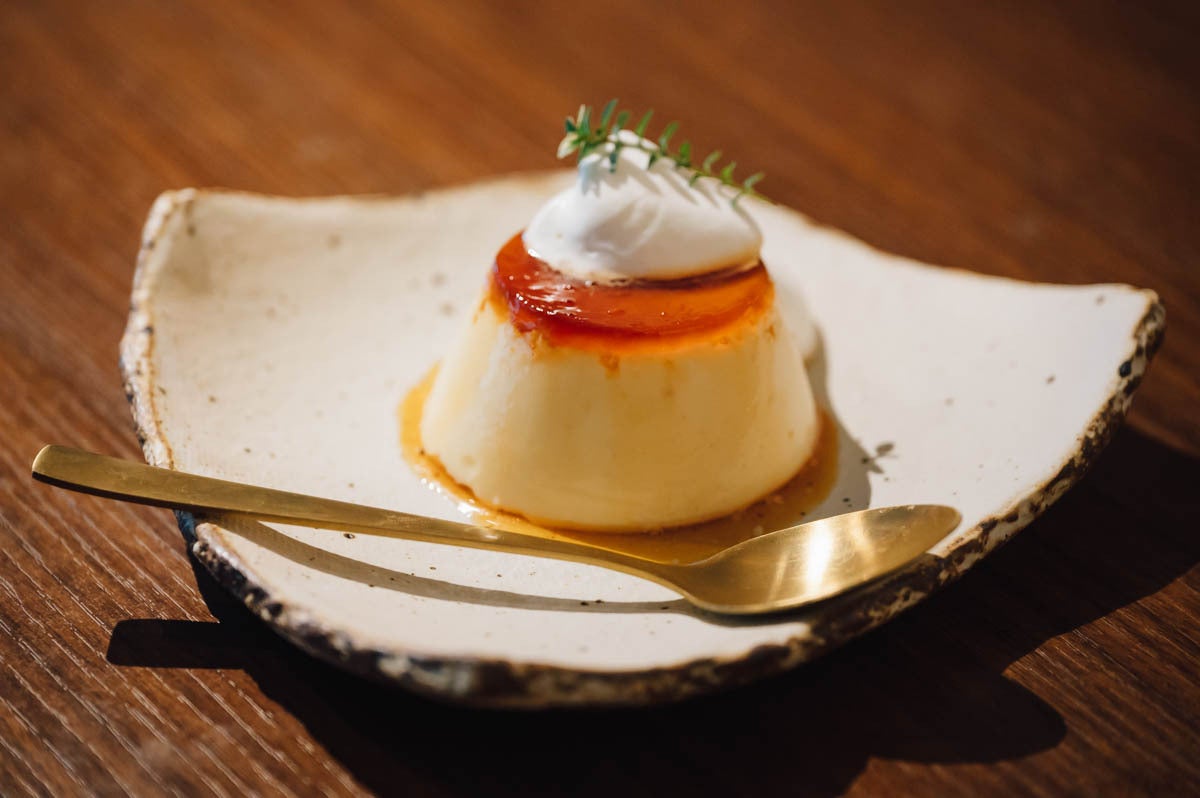 自家製プリンと季節のフルーツで作るジャスミンのミルクプリンがおススメです!自家製プリンは何度も何度も試作を重ねて作りました。ラムを効かせて少し大人な味わいですが、うちの子はみんな大好きで試作があっという間になくなってしまします。手作りプリンならではの硬めの食感を大事にしつつ、なめらかさも出せるよう工夫した自信作です。ミルクプリンは、2層になっていて下はジャスミンの香りのミルクプリン、上は季節のフルーツとエルダーフラワーのジュレになっています。甘すぎず爽やかで最後まで飽きずに食べられると思います。