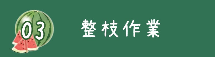 苗が伸びてきたら、のびのび成長できるように余計なツルや葉を取る作業をします。池口農園では伸ばしたいツルを4本残す4本整枝方式を採用しています。ツルは伸び始めるスピードが速いので、この整枝作業を交配までに3〜4回行います。一株終わらせるのに大ベテランの義母さんでも3・4分はかかります。1本のトンネルには70株ほどスイカが植わっているため、最低でも3時間半はトンネルに潜りっぱなしで腰痛を併発します。