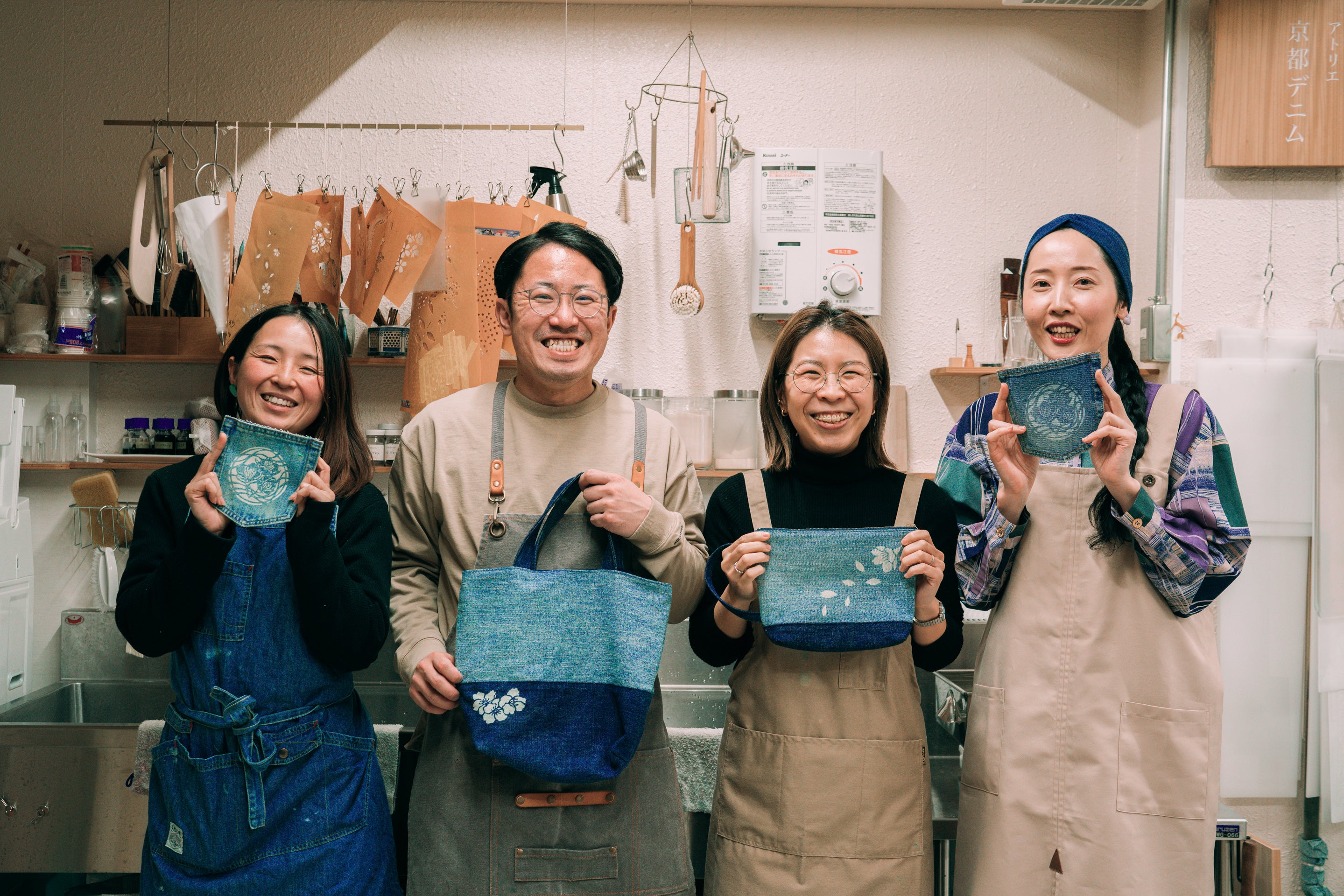 私たちは、着物の染色技法を使って商品企画や販売、イベント企画などを行う京都のバッグブランド「京都デニム」さんが主催する「デニスク」プロジェクトに参加する社会人4名です。