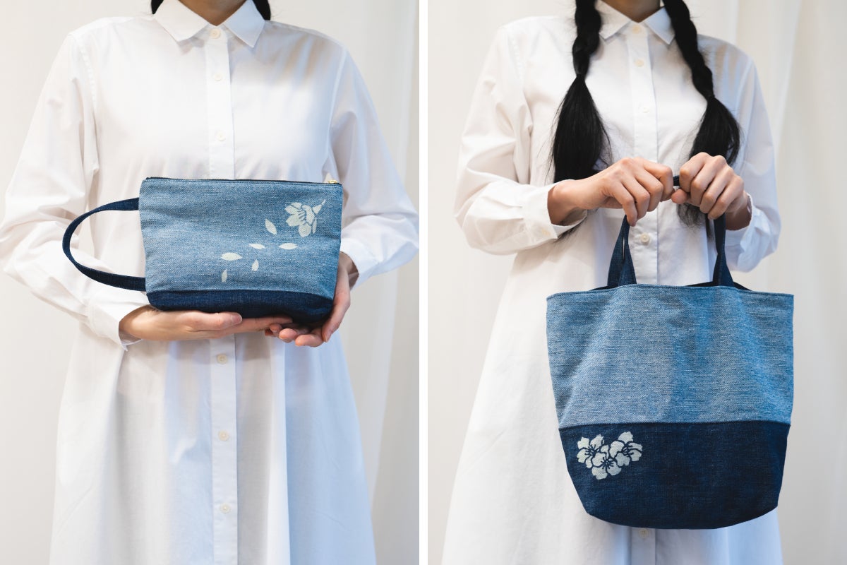 ■桜紋デニムポーチ/桜紋デニムトートバッグ