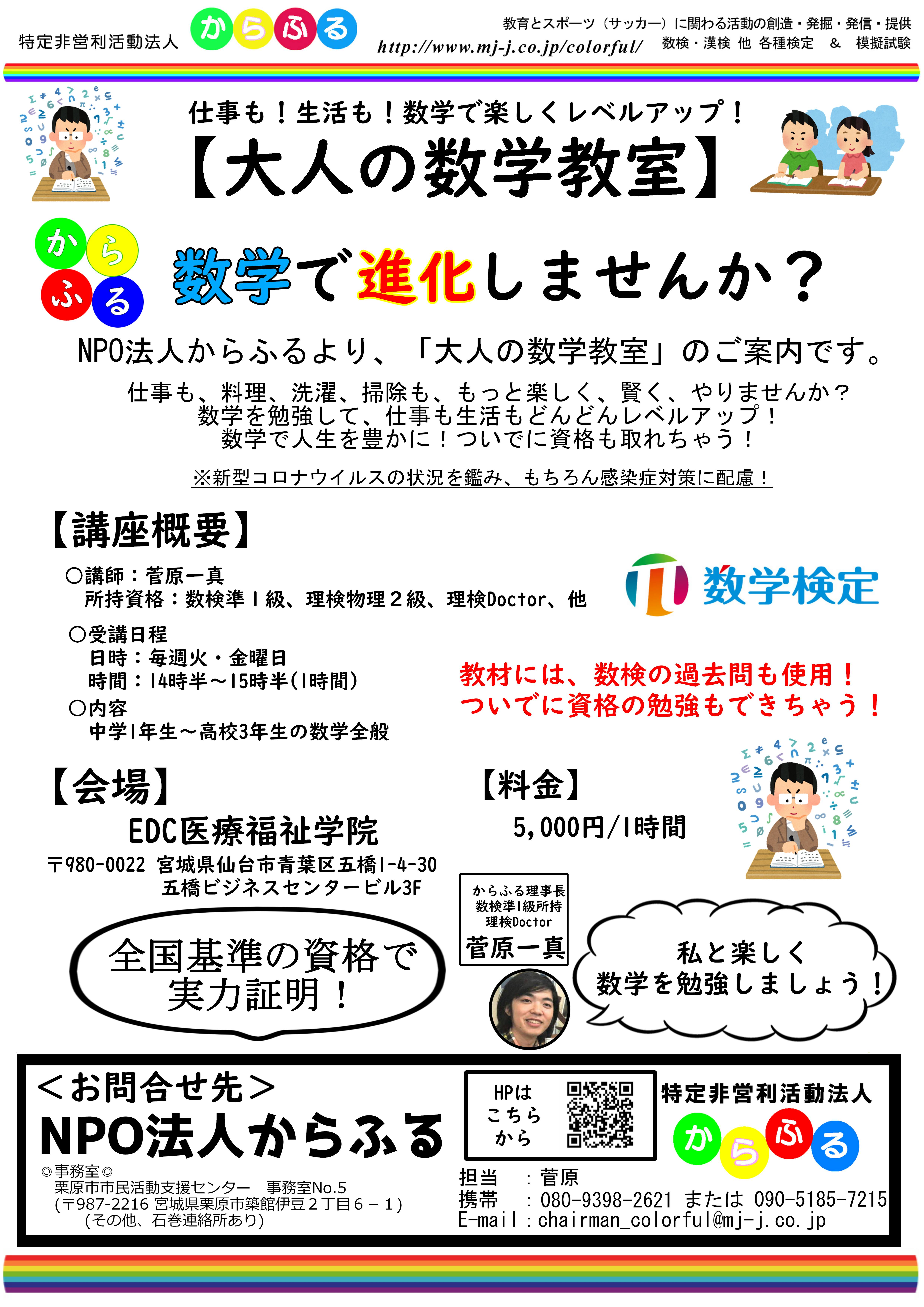 昨日は、仙台で実施中の【大人の数学教室】の実施日でした!
