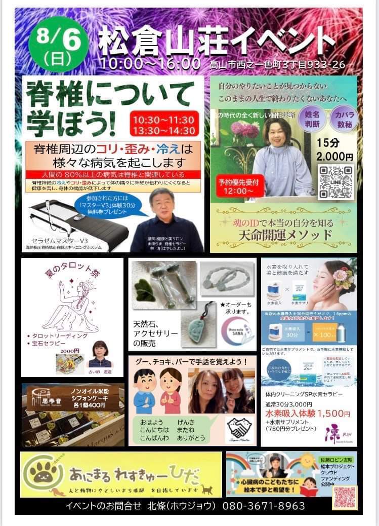 8月6日に松倉山荘でイベントがあります。残念ながらお声いただいたのですが、音楽のご縁をいただきその日は不在です。名古屋に歌いに行きます!
