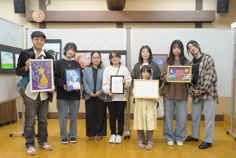 手描きはもちろんの事、独創的な絵や、版画、パソコンで描いた絵、色鉛筆で描いた物まで幅広く力作揃いです。