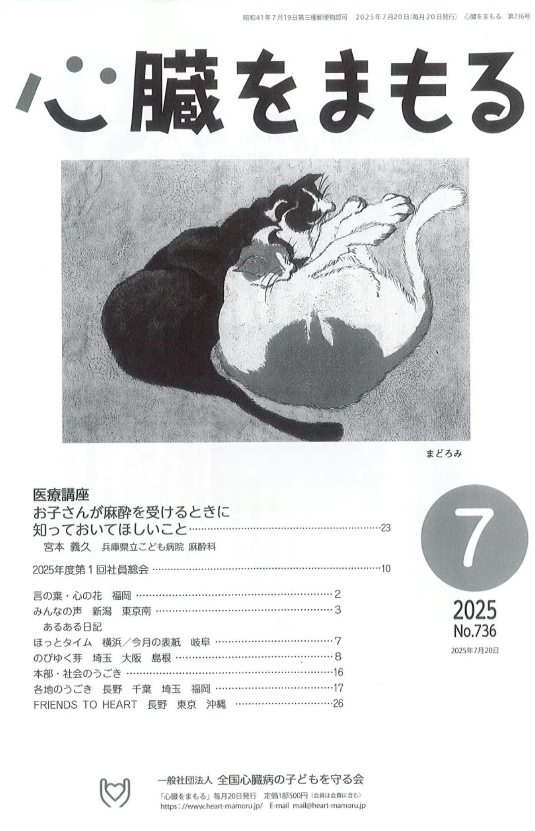 表紙に猫の絵を、2年前のクリスマスに二十歳までの心臓病のお子さん達に寄贈させていただいた絵本の紹介と、感想を掲載していただいきました。