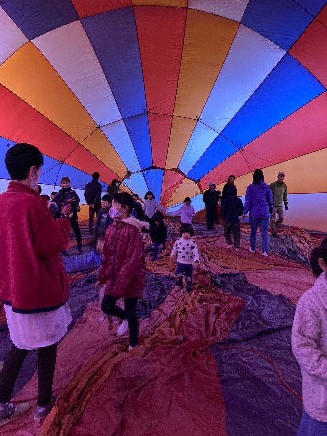 先週、熱気球体験の返礼品を行いました!まずはご支援いただいた方々に搭乗してもらいました。天候不順により、乗れなかったちびっこ達には申し訳ありませんでしたが、急遽「バーナー体験と、体育館の中で気球の中に入ってもらい気球に触ろう!」に切り替えてもらいました。ちびっこたちは、楽しそうに走り回っていたのでご招待させてよかったです。