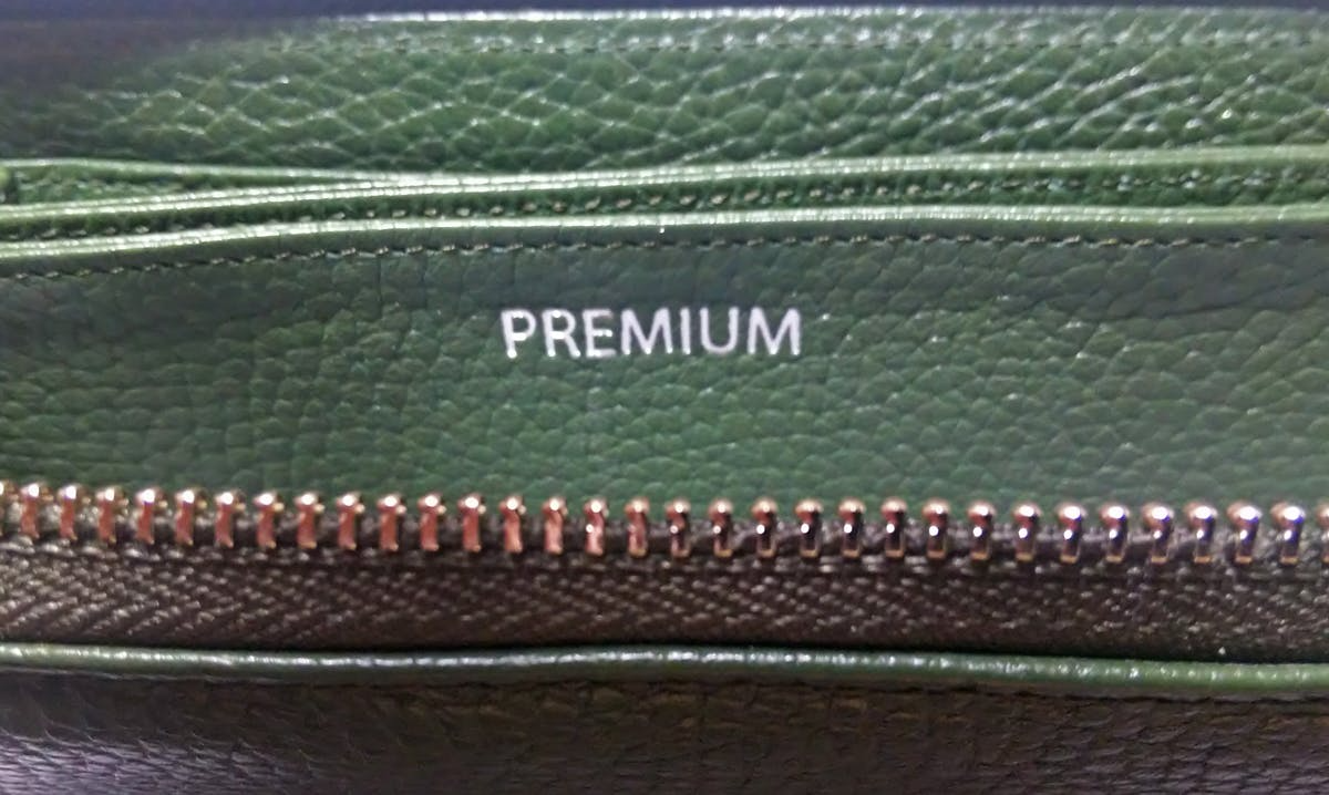 プレミアムロゴは内側のコインポケットに刻印してあります。