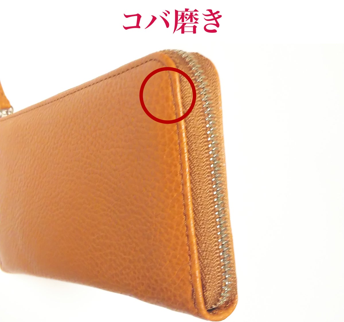 コバ磨き、革の裁断面を均等に整え磨き上げる処理や革そのままだとボロボロになって形も崩れてしまいます。