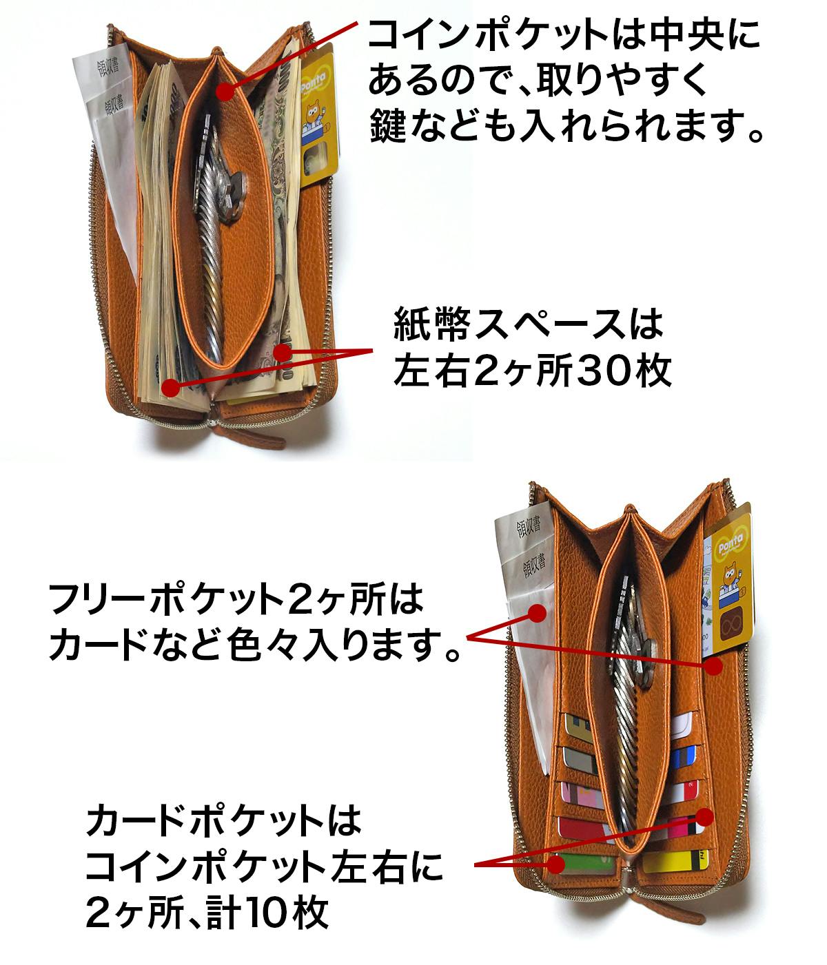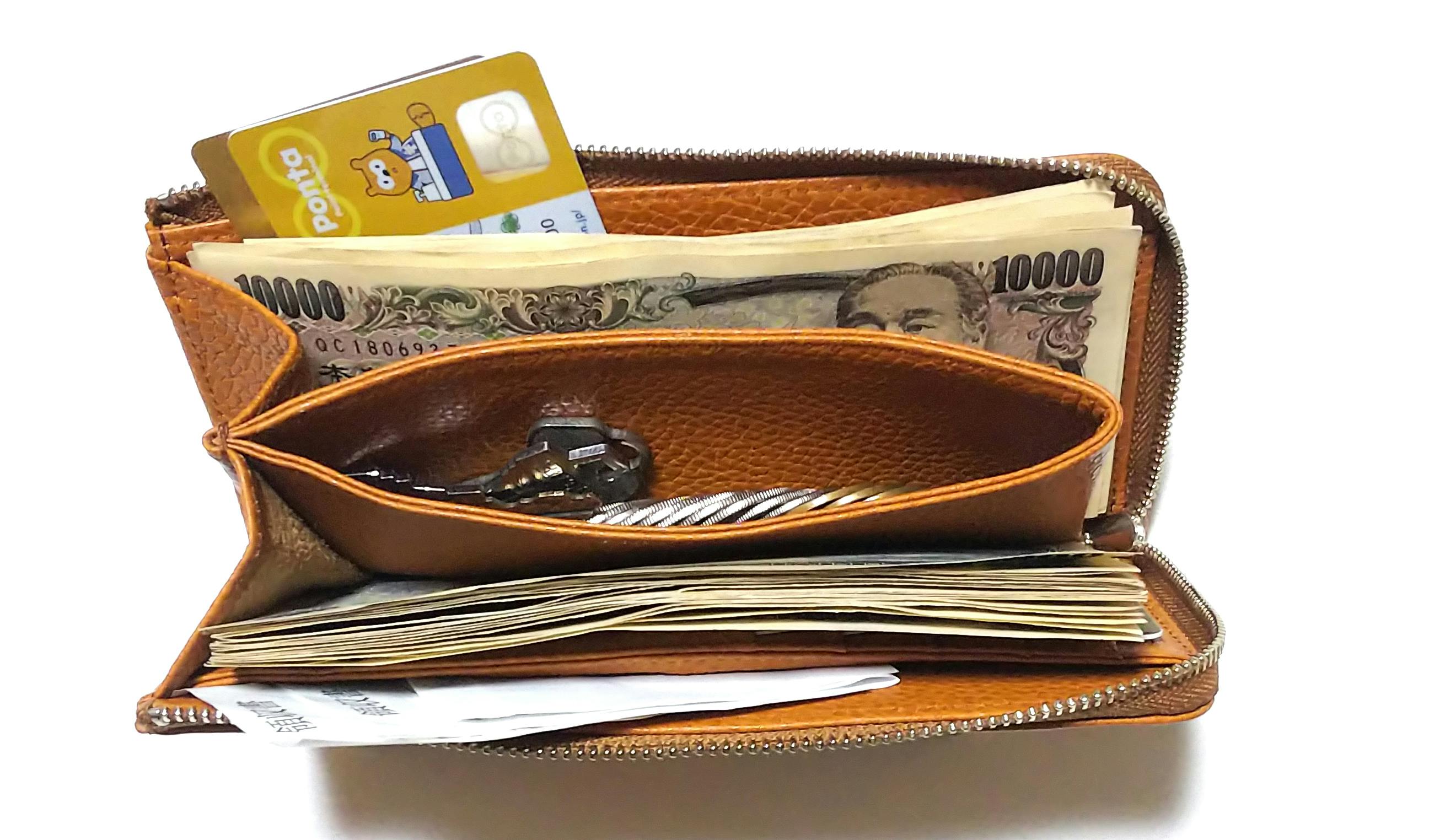 ②大きく開くのでカード、小銭、紙幣の出し入れがカンタン。
