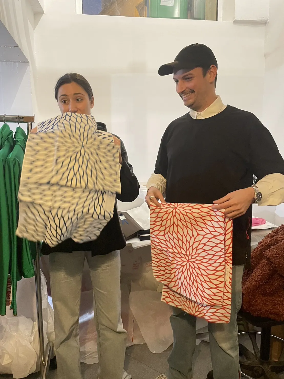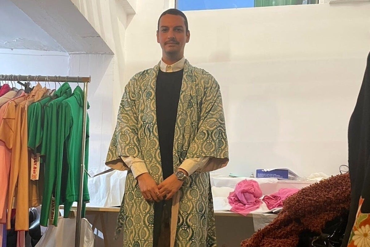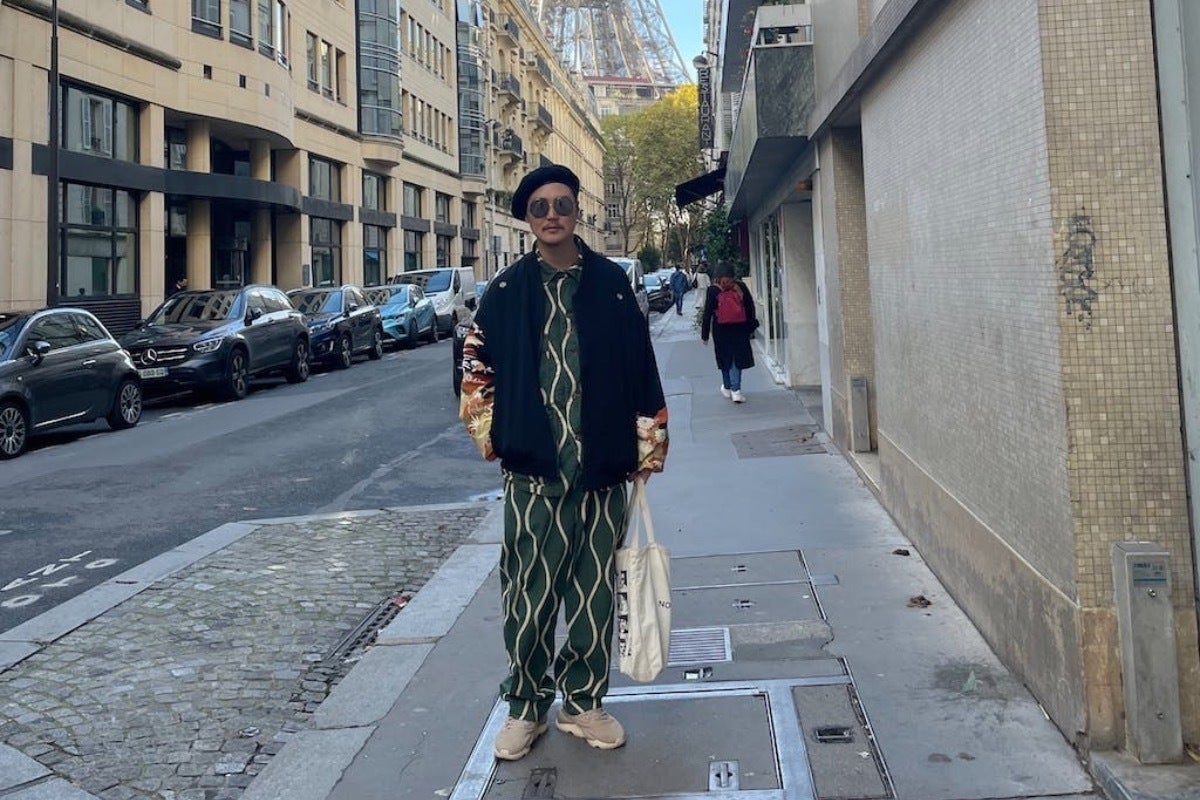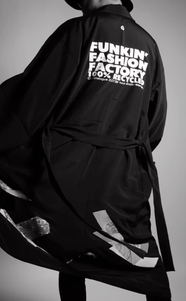 着物の生地に、大きなロゴが発するエネルギーが「ボン!」と入っていてとても満足しています。このご縁から、2023年3月のパリコレで取り扱っていただけることになりました。