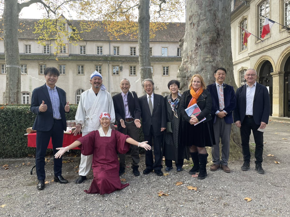 フランスのアルザス地方にある「壁紙博物館」で行われた葛飾北斎の『北斎展』のオープニングイベントで餅つきを披露した弥栄のお二人。