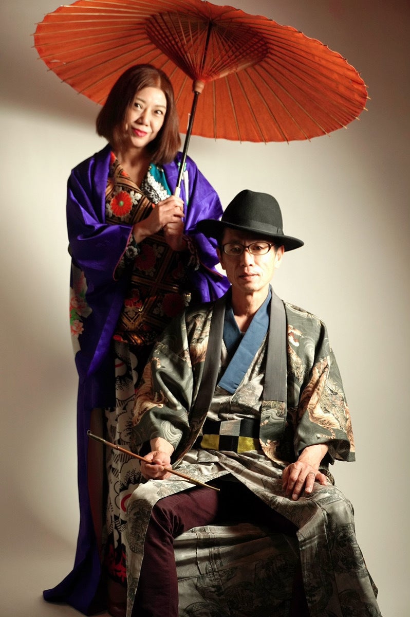 今回はクラファンのやり方が分からないけど応援したいから着物のスタイリングで撮影するわ。と言ってくださって来店されたご夫婦のお写真。