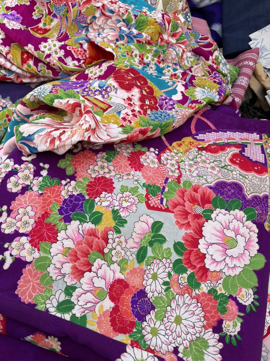 明治から昭和初期の古布を取り扱うお店に来ていたお客さんのリメイクがかっこ良かったので写真を撮らせてもらいました。
