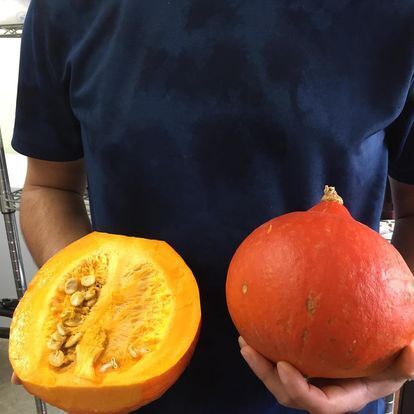「北の紅」は市場に流通することはほとんどない稀少なかぼちゃで、一般的なカボチャよりも甘みが強くて水分量が多く、加工に適している特徴があります。