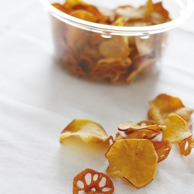 れんこんとさつまいもの野菜チップス 35g入り6個セット 賞味期限、製造から2か月 原材料、さつまいも(福岡県産)、れんこん、油、塩 保存方法、常温保存 箱のサイズ 80サイズ