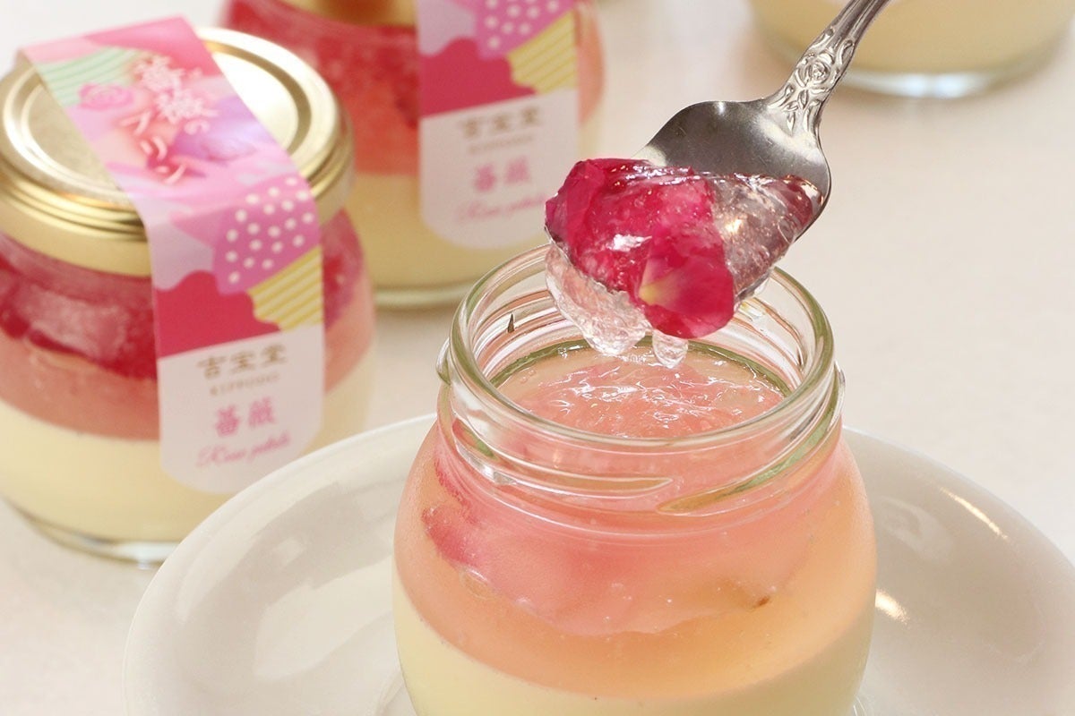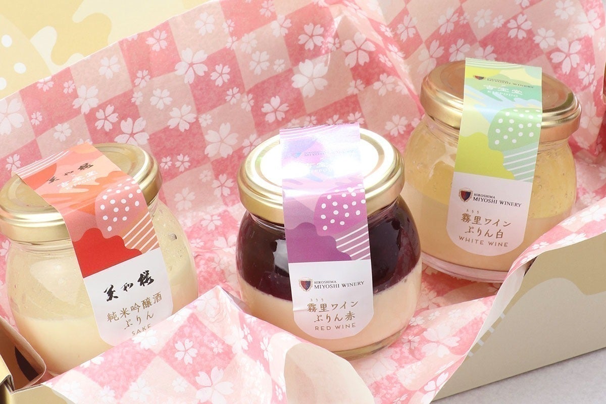 さらには2層(上層部を色々なフレーバーでジュレ仕立、下層部はプレーン生地)に分かれたプリンを開発しました。地元広島県三次市を代表する特産品、広島三次ワイナリーのワインを使用した「霧里ワインぷりん赤・白」美和桜酒造の純米吟醸酒でフルーティーな香りを閉じ込めた「純米吟醸酒ぷりん」等のコラボプリンや、薔薇の街、広島県福山市近くの神石高原町で無農薬栽培された「鈴木の薔薇」を使用した「薔薇のプリン」、また広島を代表する醤油メーカー川中醬油とのコラボプリン「お宝しょうゆプリン」等々と、その創造性はジャンルを選びません。そして料理人ならではの季節感を演出した季節のプリン「桜プリン」「薔薇のプリン」「マンゴープリン」「メープルプリン」他など一年を通じ、見て・味わって楽しめるプリンの数々は10種類以上です。