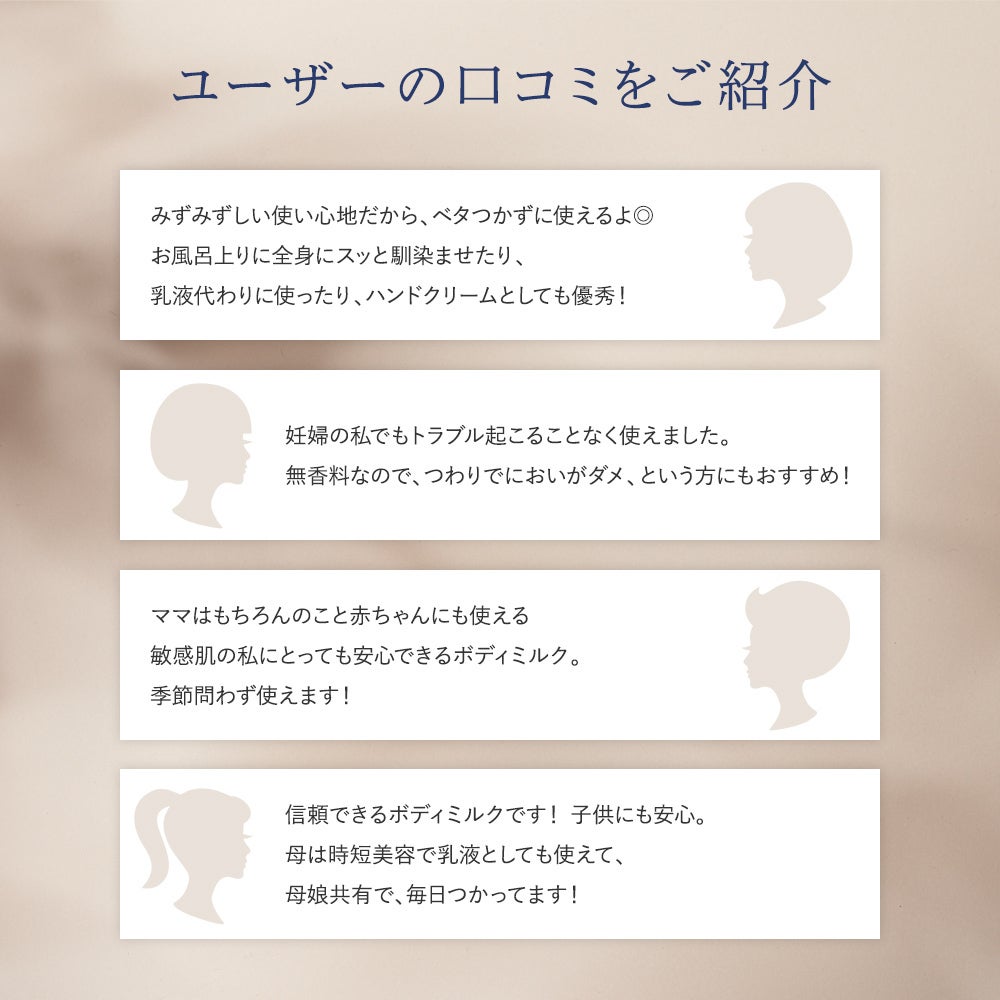 また、ボディミルクを出産祝いやプチギフトとしてご利用いただけるように、
