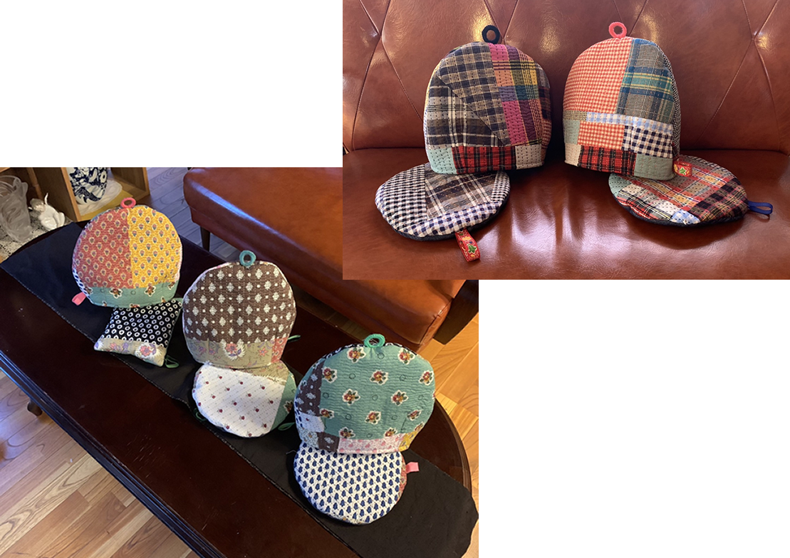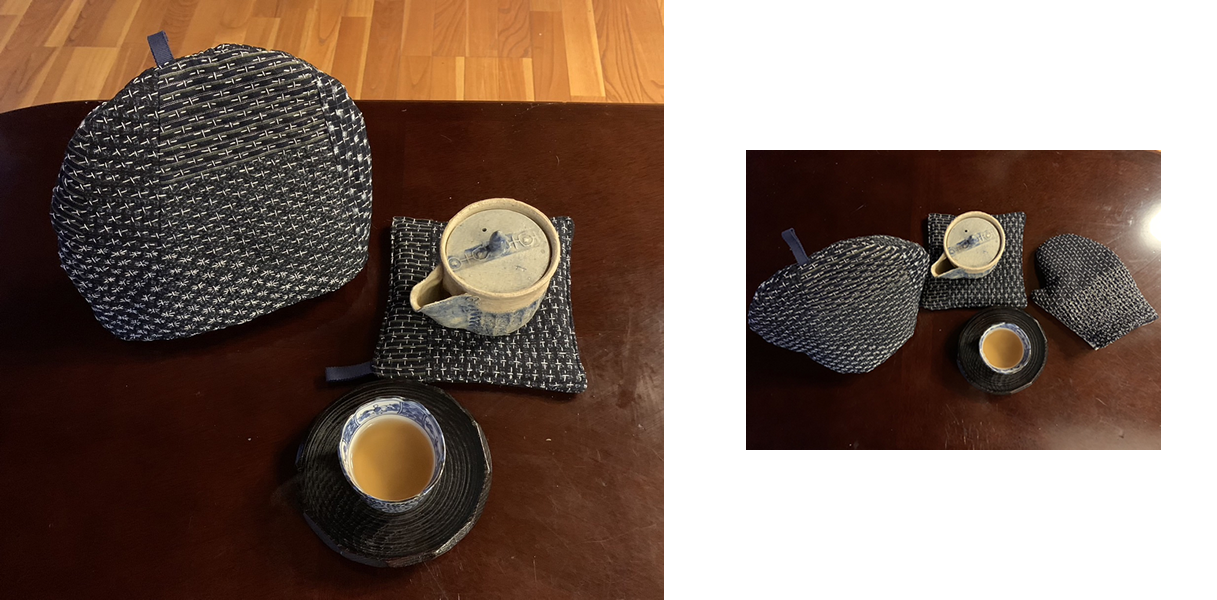 2.オリジナルデザインのティー・コジー(ティーポットカバーとポットマットのセット)