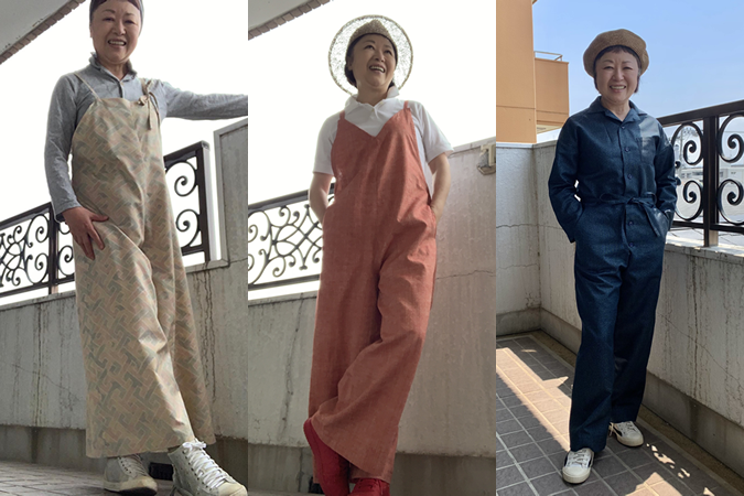 サロペットやジャンプスーツ(大島紬など)