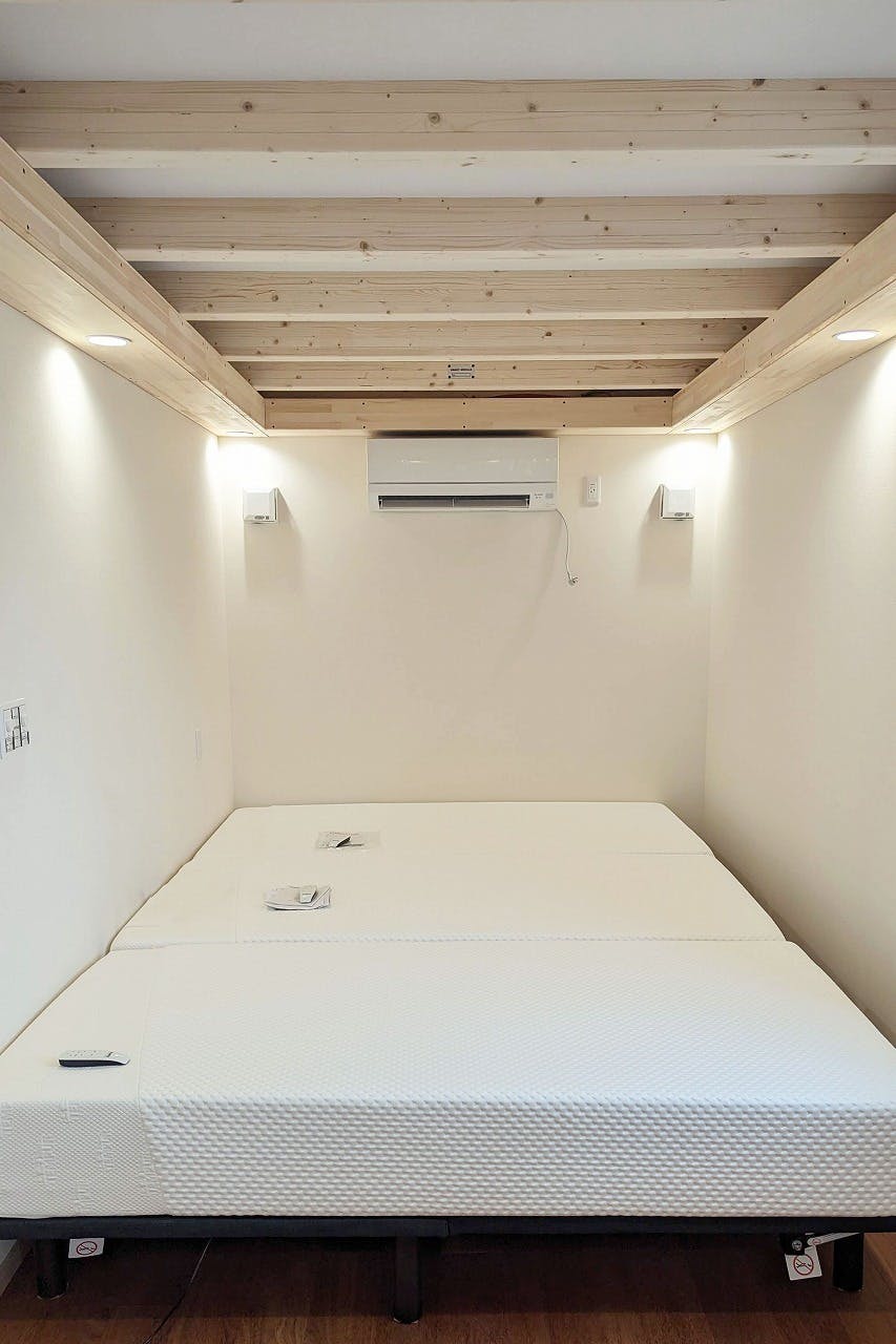 Cosmic Town の快眠ホテルでは、人口温泉、高濃度炭酸泉、セルフロウリュサウナを行った後にテンピュールのベッドで眠れる流れを作っております。