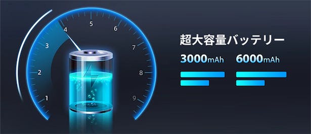 ABFOCEは3000mAhと6000mAhからバッテリー容量を選択可能です。パネルライトとフロントライトを同時に点灯させる場合、30時間使用できます。