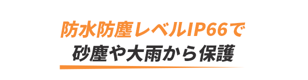ABFOCE は防水防塵レベルIP66で、本体を粉塵や大雨から保護します。また、落下や衝撃にも強い設計となっておりますので、アウトドアに大変適しています。