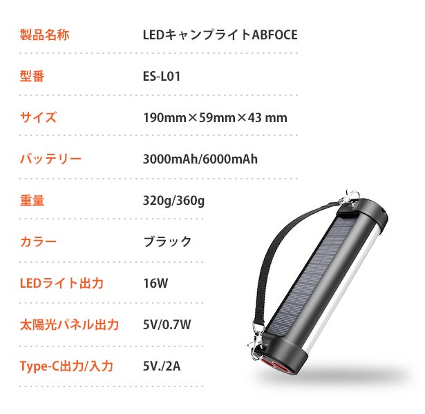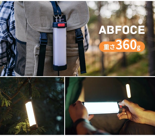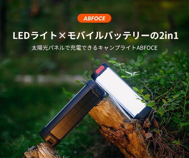 「ABFOCE」はアウトドアでより楽しく、より便利に過ごしていただきたいという思いを込めて開発したLEDキャンプライトです。照明とモバイルバッテリーが一体化したこの1台があれば、より身軽にキャンプへ、ハイキングへ出掛けられます!
