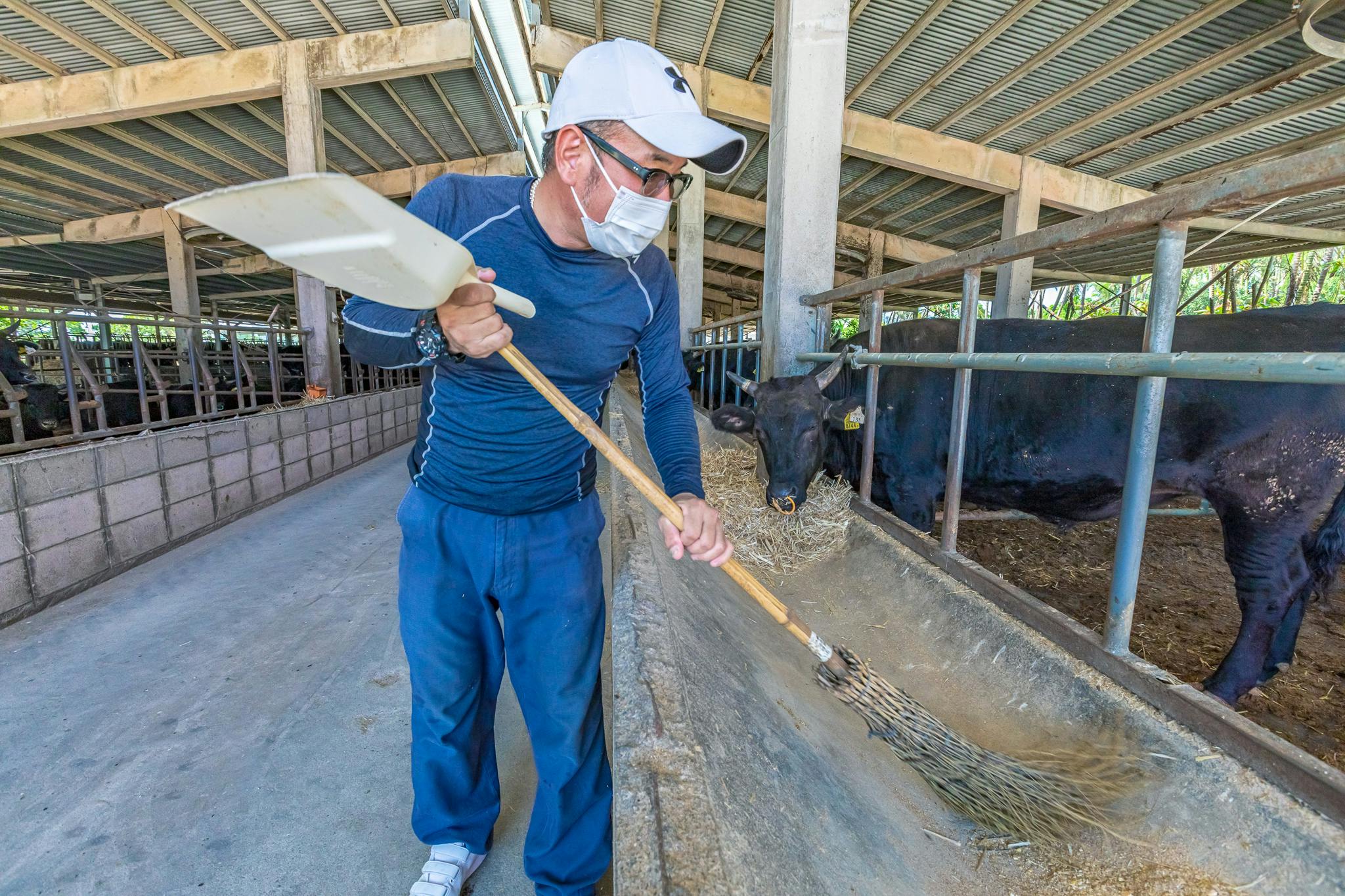 ファームディレクター 當銘 強約7,000坪の広大な敷地で150頭ほどの石垣牛を育成。牛舎のスペースを広めに使い、体の大きな牛たちでもゆったりとストレスが少なく肥育できる環境が整っています。牛たちへの愛情と育成する責任感が強く、綺麗で清潔な牛舎・牧場の維持を心掛けています。エネルギー問題に付随して肥料や飼育資材価格の急激な高騰、緩和に向かっているものの新型コロナの影響による観光客の減少、商品価格が高くなったことによる売れ残り・廃棄など厳しい状況がまだまだ断続的に続くのではないかなという不安があります。