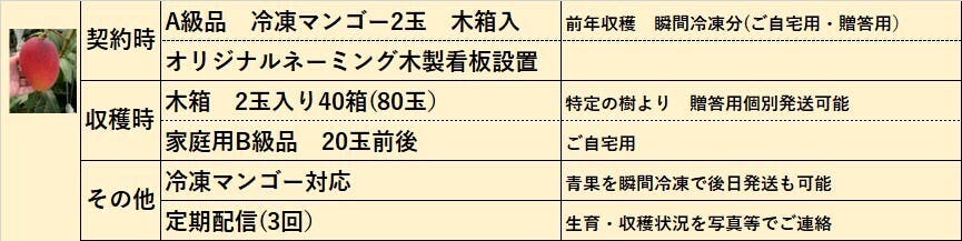 ⑧ 60万円コース マンゴーの樹オーナー(1本より約100個収穫)