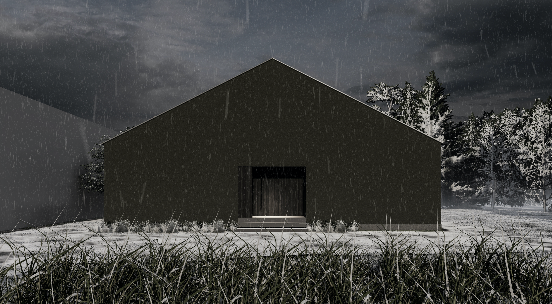 ベルツ通りの林道を抜けると見えてくる当ホテルの外観には看板や窓がありません。