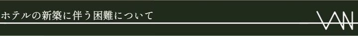 今回立て替える建物は父が経営していた工務店の保養所を改装し1979年昭和52年にオープンしたペンション 酒仙の宿 晩 です。私自身幼少期をこの場所で過ごし、バーテンダーとしての経験を積んだ後に2006年に家業を継ぎました。これまでネットのクチコミなどで評判を呼び、お客様にお酒をコンセプトとしたサービスを提供してきました。建物の老朽化とより良い体験をお客様にご提供するため、ホテルの建て替えを決意しました。