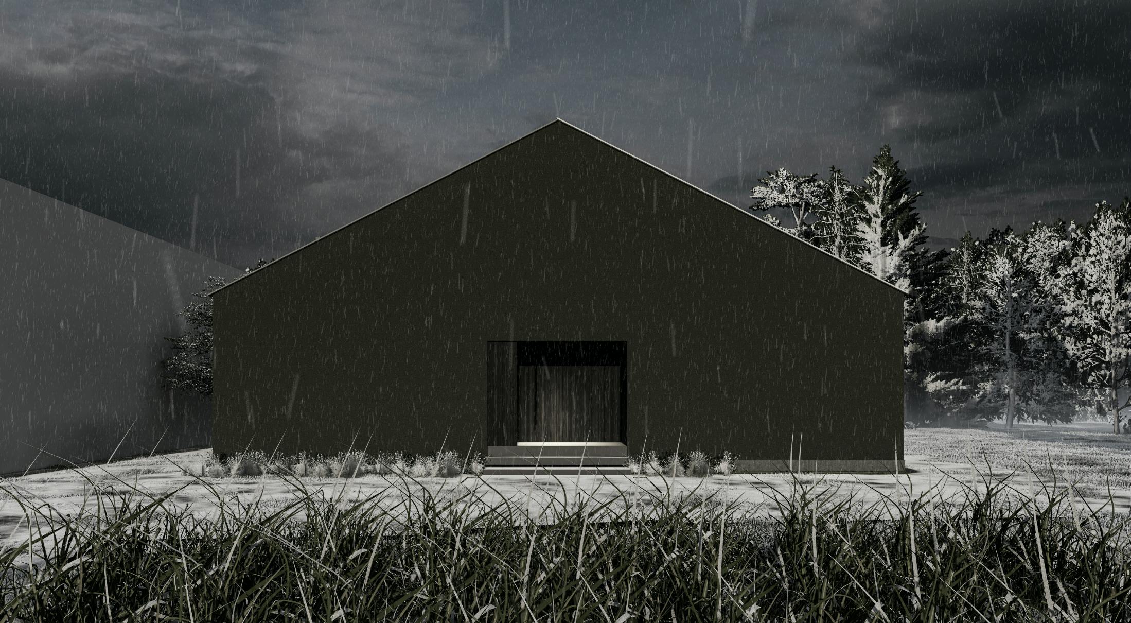 ベルツ通りの林道を抜けると見えてくる当ホテルの外観には看板や窓がありません。