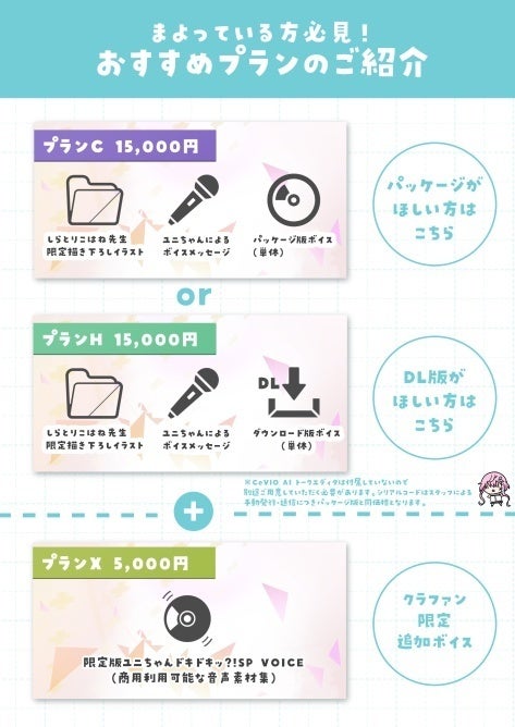 プランC・D・E・F・G・H・Mに付属いたしますCeVIO AIユニちゃんトークボイス単体(パッケージ版 及び ダウンロード版)につきましての注意事項