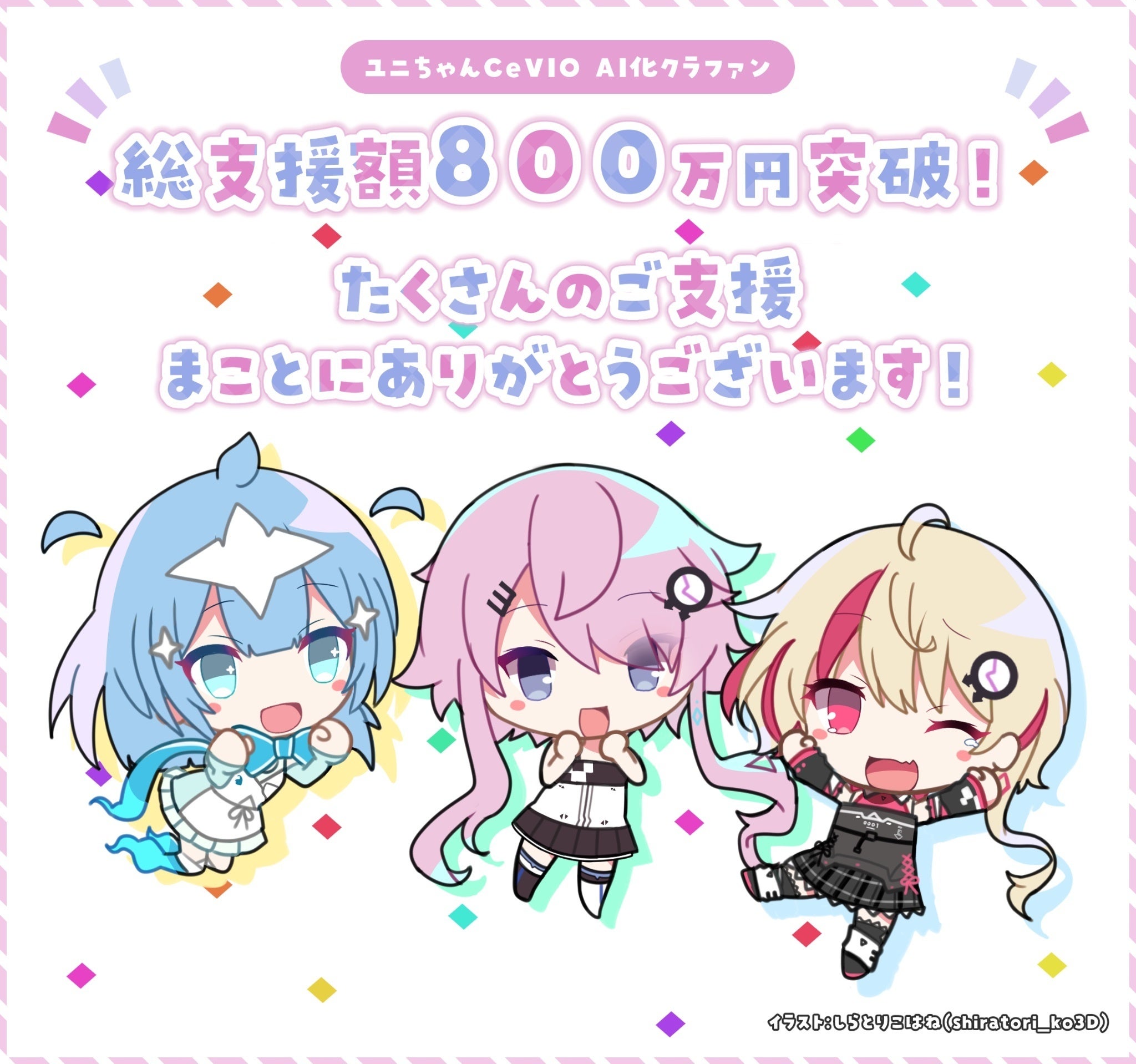 みなさまがフィーちゃんを愛してくれてたくさん使ってくれて、ツイッターにも多くのファンアートや動画を公開いただいたことで、今回のCeVIO AIユニちゃんクラウドファンディングの企画は実行できました。