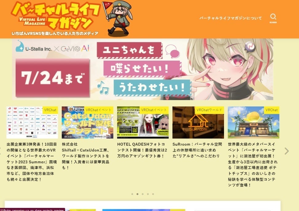 現在バーチャルライフマガジンのトップページをユニちゃんがジャックしております。