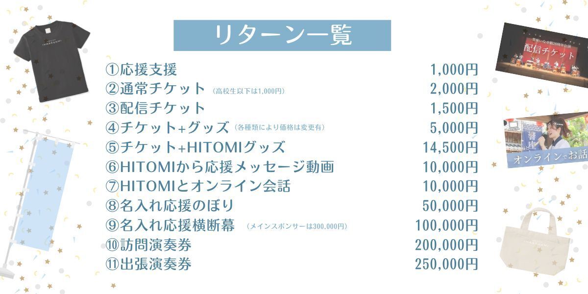 SNSでいつも応援してくださるhitomiファンのみなさへ向けたリターンもたくさん!