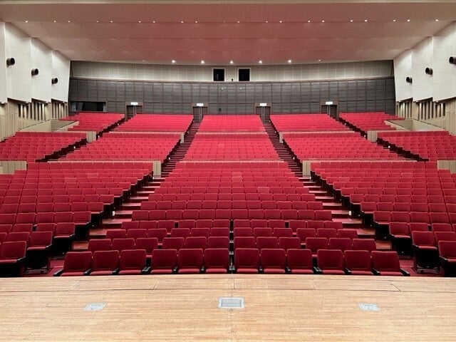 4月末には、公演で使用する会場「クラギ文化ホール」で練習を行ってきました。