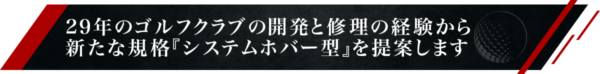私は29年間のゴルフクラブの開発、リペアの経験の集大成として、新たなホバー型という規格を日本から世界に発信したいと思っています。