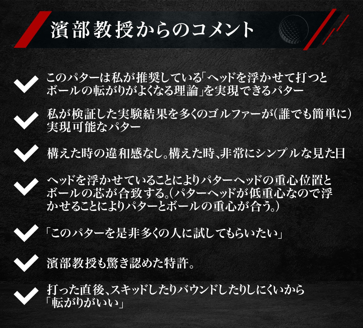 そこで、プロと同じような打ち方が出来る新規格のパター、システムホバー式のパターを考案しました。