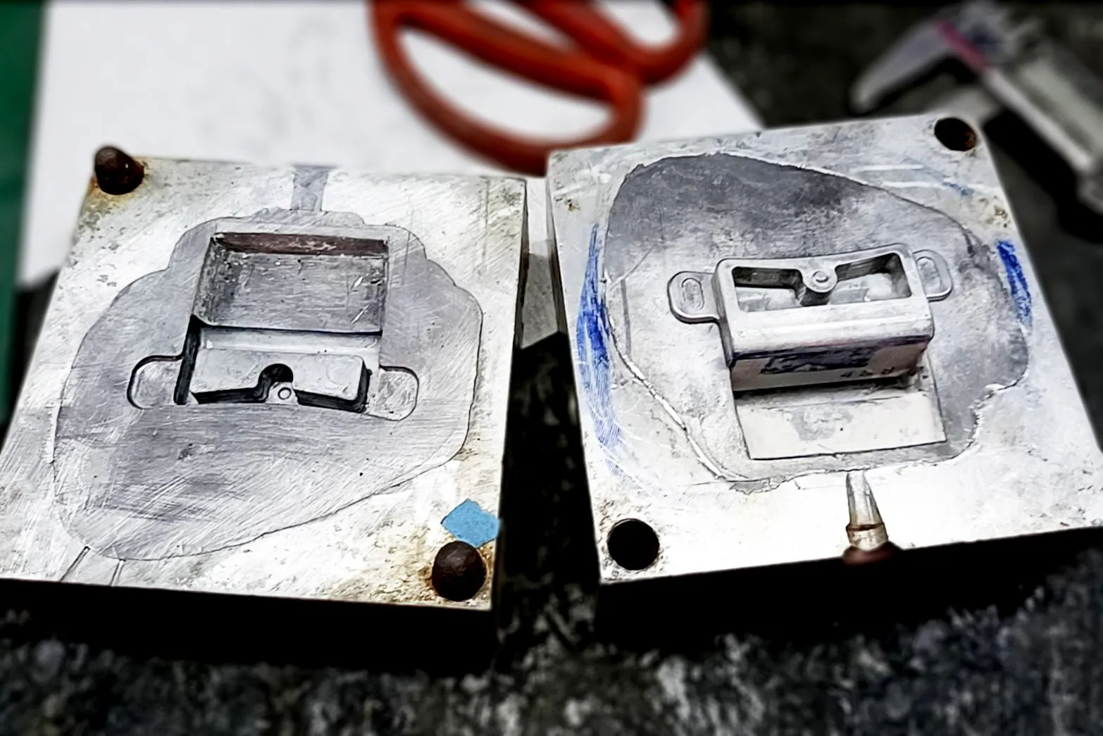 これから、この金型で作成したパーツを研磨したものを、柴崎が一つ一つチェックした上で、