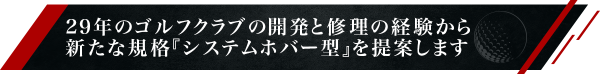 私は29年間のゴルフクラブの開発、リペアの経験の集大成として、新たなホバー型という規格を日本から世界に発信したいと思っています。
